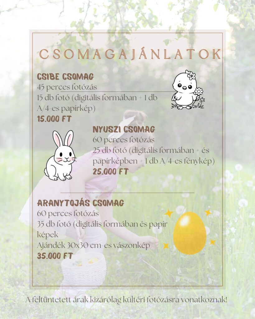 A fotózás időtartama -csomagtól függően – 1 óra. Törekszem arra, hogy oldott hangulatban teljen az együtt töltött idő. Fontosnak tartom, hogy végig önmagatokat tudjátok adni. Nagy öröm számomra, hogy korábbi ügyfeleimtől azt a visszajelzést kaptam, hogy jó élmény volt számukra a fotózás.